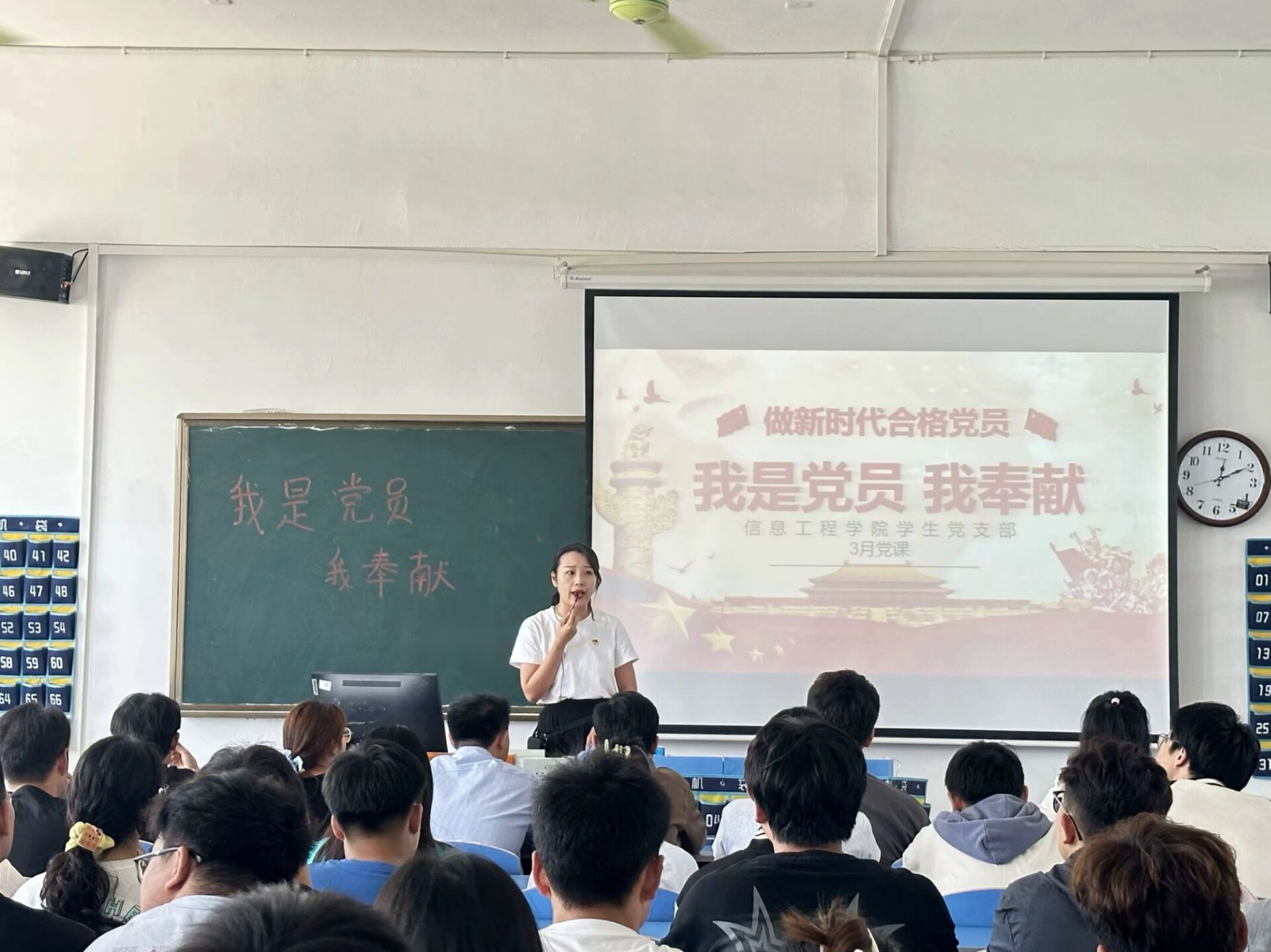 本网讯(记者/通讯员 陈雪)信息工程学院党总支于3月22日在6505教室组织开展了“我是党员,我奉献”主题党课活动,我院全体教师及在校学生党员参加了本次学习活动。