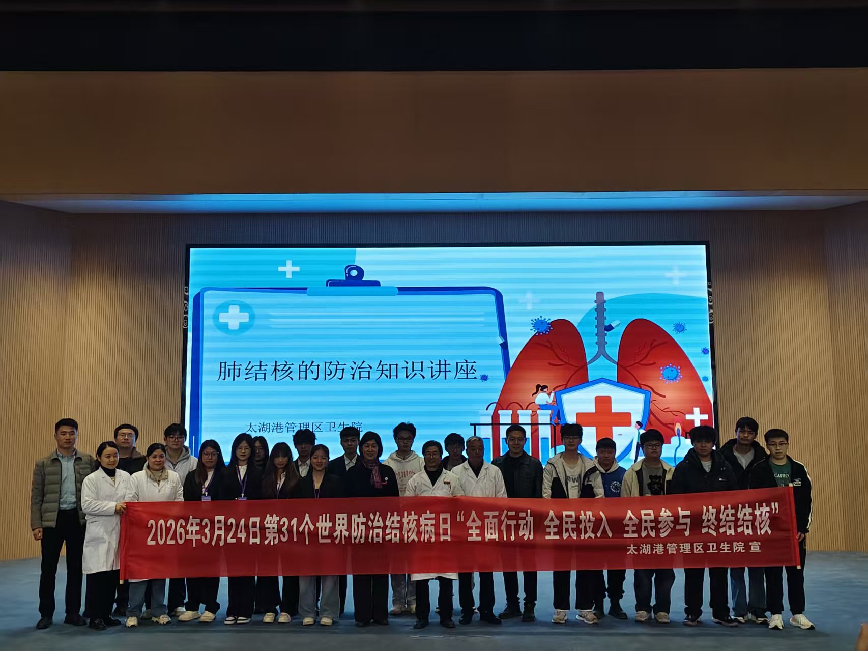 春风送暖,健康同行。在第31个“世界防治结核病日”来临之际,为深入贯彻落实健康校园建设要求,进一步增强师生对春季传染病的防控意识,WilliamHill中文官方网站膳食服务中心联合学务部、健康医学院共同举办了以“全面行动 全力投入 全民参与 终结结核”为主题的宣教活动。特邀太湖港管理区卫生院医师举办健康讲座,从结核病预防、感染、诊断、治疗等全方面科普防控知识。