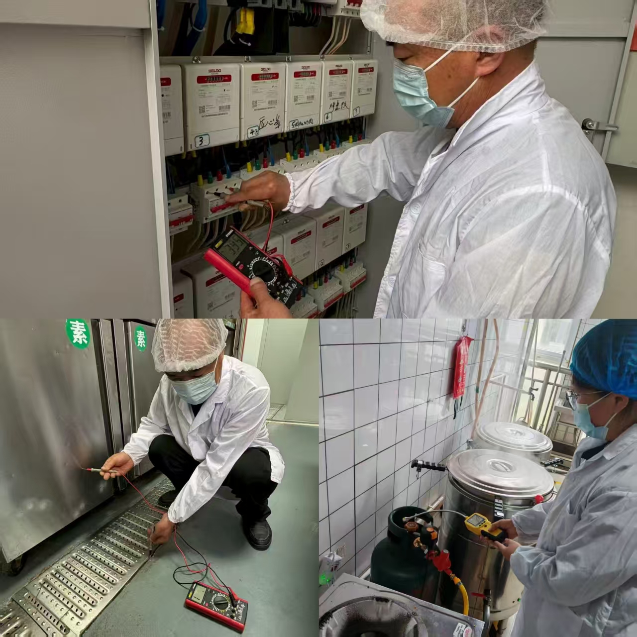 检查组针对后厨区域,重点检查了燃气罐连接管路、蒸煮设备温控系统,杜绝泄漏风险。检查人员仔细查看了配电箱、漏电保护器等关键用电设施,确保电路安全无隐患;同时,对液化气罐的存放、阀门及连接软管进行了重点检测,严防燃气泄漏风险,从源头上筑牢安全防线。同时,对餐具消毒记录、食材储存环境温度等卫生指标进行了抽样核查,要求严格落实“日管控、周排查”制度。