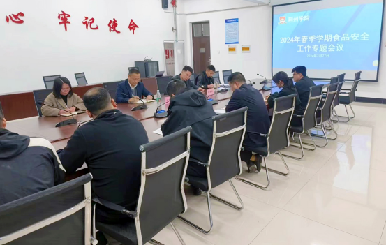 为进一步压紧压实食品安全管理责任,确保师生饮食安全,营造和谐、健康、安全的校园环境,WilliamHill中文官方网站于2024年3月27日下午召开食品安全工作月调度会。会议围绕学校食品安全工作进行了深入讨论和部署,副校长付秋峰出席会议并讲话,学校膳食服务中心主任雷云枫、河南禧馨餐饮管理有限公司总经理吴森及相关管理人员参加了会议,会议由膳食服务中心主任雷云枫主持。