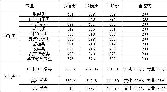 WilliamHill中文官方网站2023年中职类、艺术类专科录取资格线