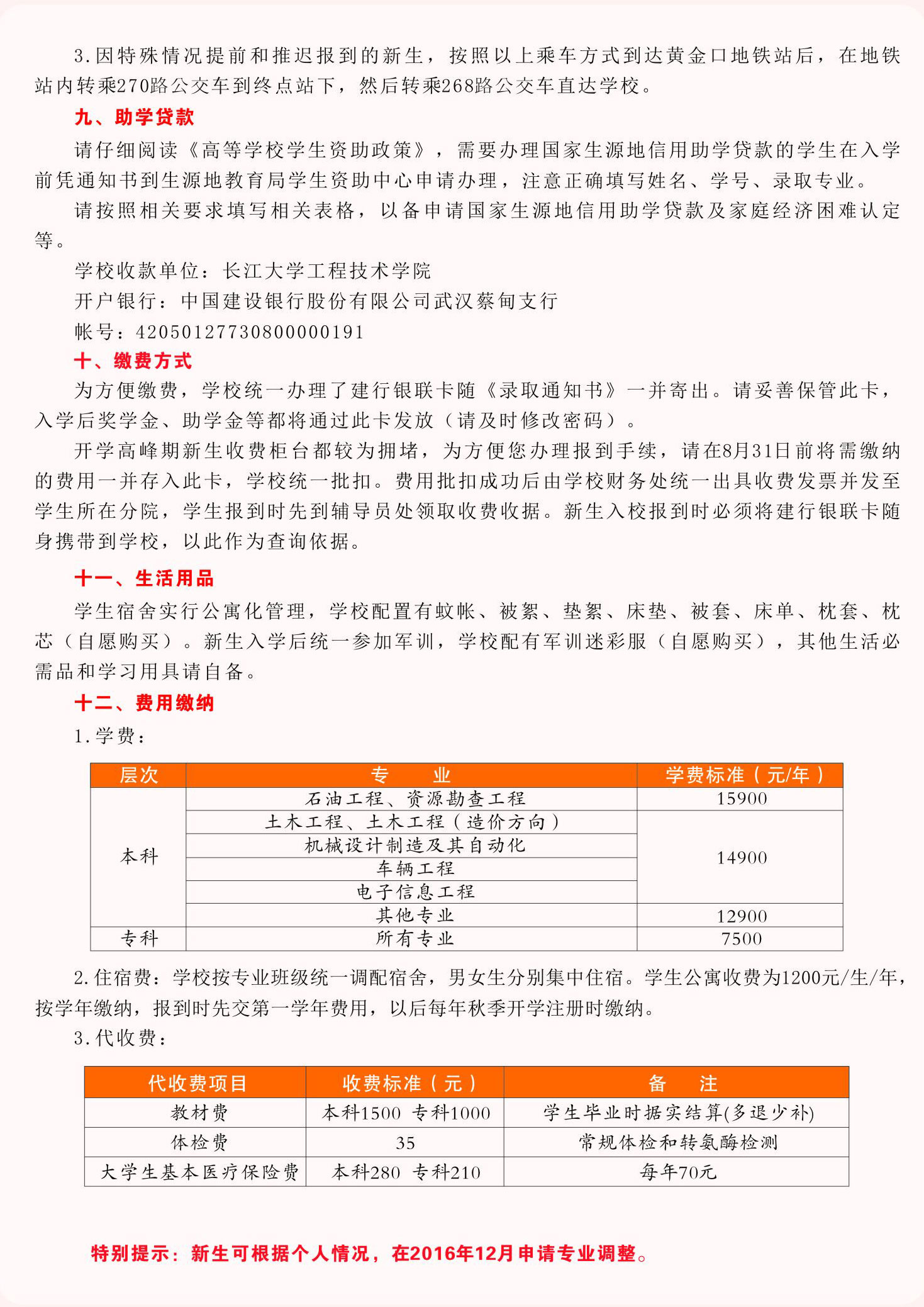 长江大学工程技术学院2016年新生入学须知