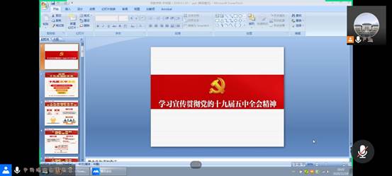 尹诗琪老师首先讲解了此次会议的背景及重要意义。他指出,五中全会会议中习近平总书记明确提出了“十四五”时期我国经济社会发展的指导方针、主要目标、重点任务、重大举措,是开启全面建设社会主义现代化国家新征程、向第二个百年奋斗目标进军的纲领性文件,是今后5年乃至更长时期我国经济社会发展的行动指南。各级党组织和广大党员干部要坚持以习近平新时代中国特色社会主义思想为指导,增强“四个意识”、坚定“四个自信”、做到“两个维护”、当好“三个表率”,认真学习贯彻全会精神。