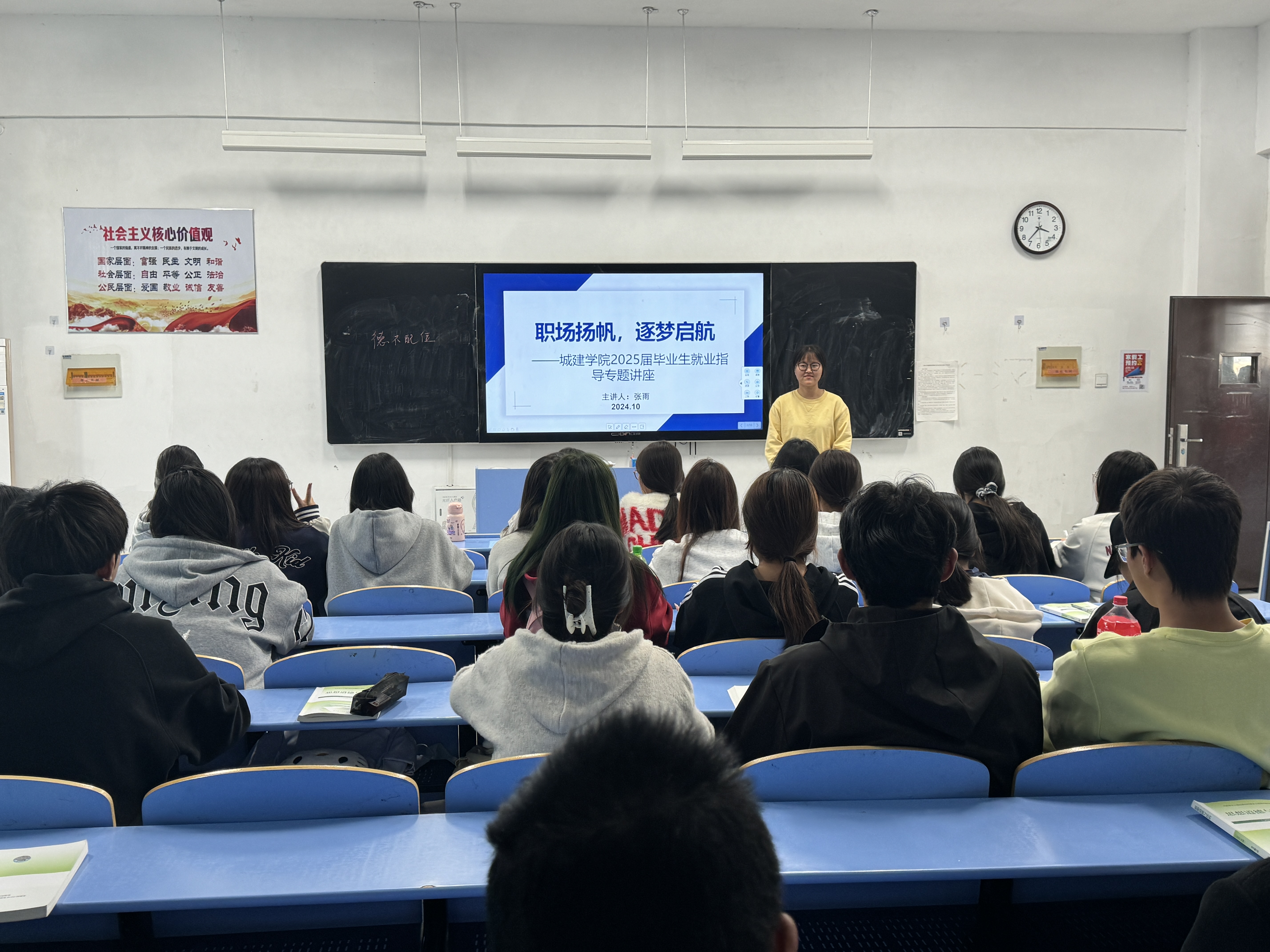 为帮助城市建设学院2025届毕业生了解就业形势、掌握求职技巧,提升就业竞争力,为即将步入职场的他们指引方向。11月4日下午我院在1304教室开展职场扬帆,逐梦起航——城市建设学院2026届毕业生就业指导专题讲座。
