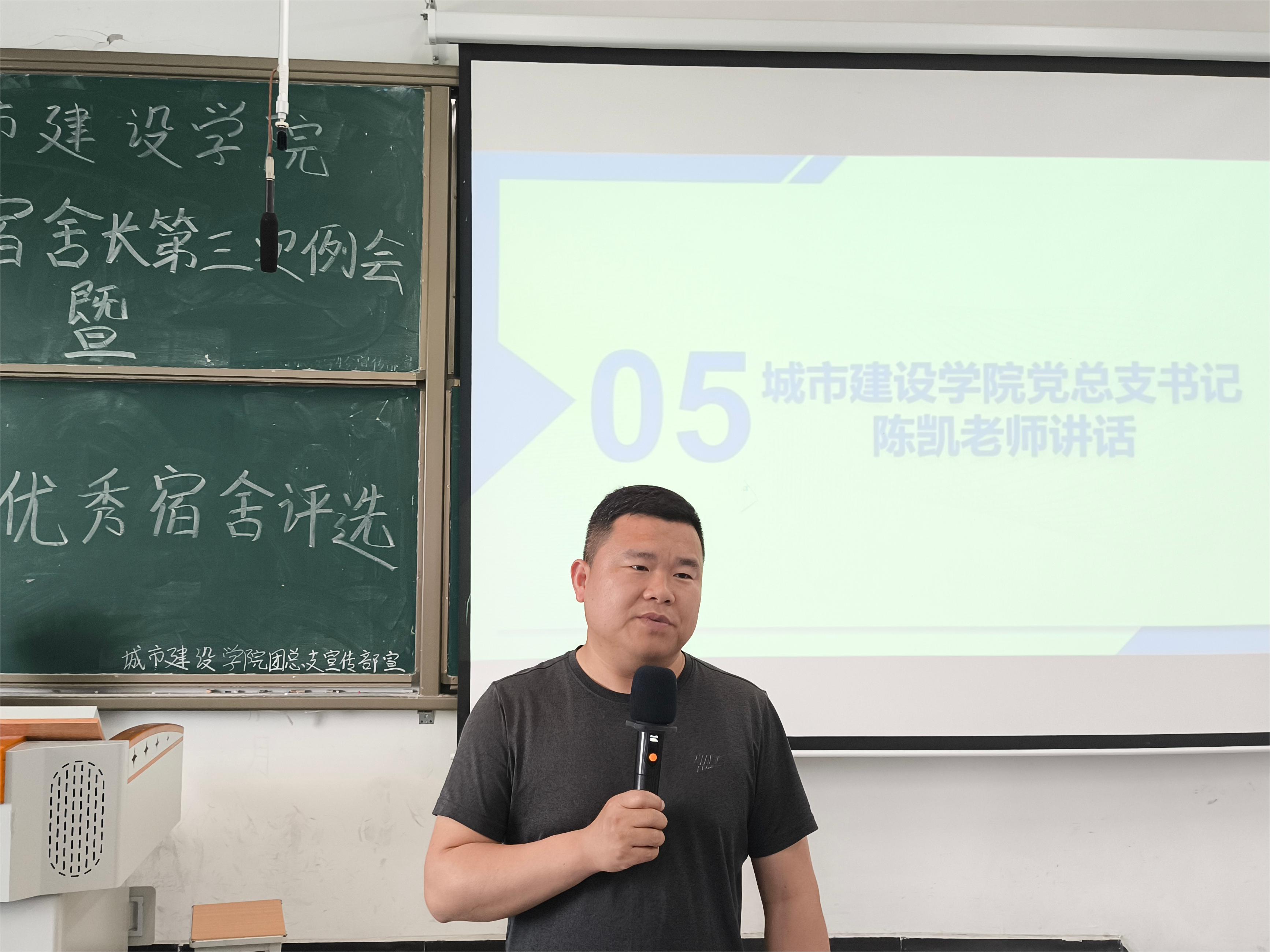 本网讯(通讯员 刘权)宿舍在大学中发挥着不可替代的作用。它既是学生生活的保障,又是培养学生集体生活能力和社交能力的重要平台,更是大学文化和精神传承的重要载体。城市建设学院于2024年4月26日中午12点在教学楼2301教室开展宿舍长例会及优秀宿舍评选。出席本次活动的嘉宾有城市建设学院党总支书记陈凯,团总支书记叶小华,学生会主席李涛,副主席曾天智,女生部兼心育部部长柳朦,权益部兼纪检部副部长田佳利.