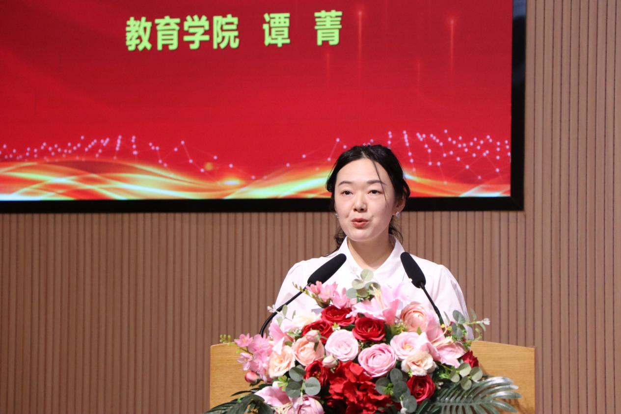 “先进党支部”代表、城市建设学院党总支书记陈凯,“宣传工作先进集体”代表、学务部副处长肖巍,“优秀共产党员”代表、教育学院教师党员谭菁,分别作交流发言,分享了基层党建工作的典型经验、践行共产党员初心使命和深耕宣传思想文化工作的生动实践,表达了永远跟党走的信心和决心。