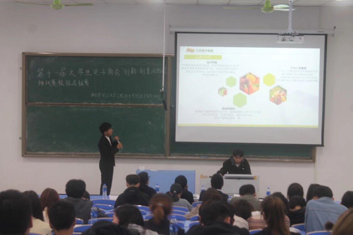 (本网讯 通讯员:谢雨晴)近日第十一届电子商务“创新、创意及创业”挑战赛(以下简称“三创赛”)校级赛在新校区3205教室隆重举行。比赛邀请了荆州职业技术学院电子商务专业负责人刘丽华教授、荆州市红叶针织服饰有限公司总经理望军、荆州市透透商贸有限公司总经理刘进等企业高管。