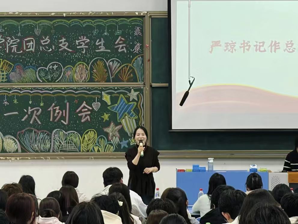 三位部长汇报完毕后,管理学院团总支学生会主席袁晓进行总结发言。她对各部门上一阶段的工作成效予以肯定,要求全体学生干部抓实日常工作,结合学院要求和同学需求策划开展各类活动;强调要加强协作配合,以春季运动会为契机凝聚团队力量。随后,团总支书记季诚老师提出,希望全体学生干部服从安排、凝心聚力推进各项工作。他着重强调学校团委工作要求:一是筑牢网络安全防线,增强反诈意识;二是严守禁毒红线,坚决抵制各类毒品;三是规范文明礼仪,做到尊师重道、文明言行。