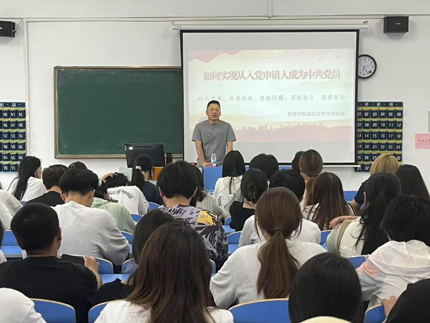 随后,冯书记详细梳理了从递交入党申请书到成为正式党员的各个环节,包括积极分子培养考察、发展对象确定、预备党员接收与转正等流程及执行要点,让大家对入党流程有了清晰认识。最后,他希望同学们在日常学习与生活中,始终以党员标准严格要求自己,将为人民服务的宗旨落实到行动中,主动担当责任,积极服务奉献,在同学中树立先锋榜样,以青春之力践行入党初心。