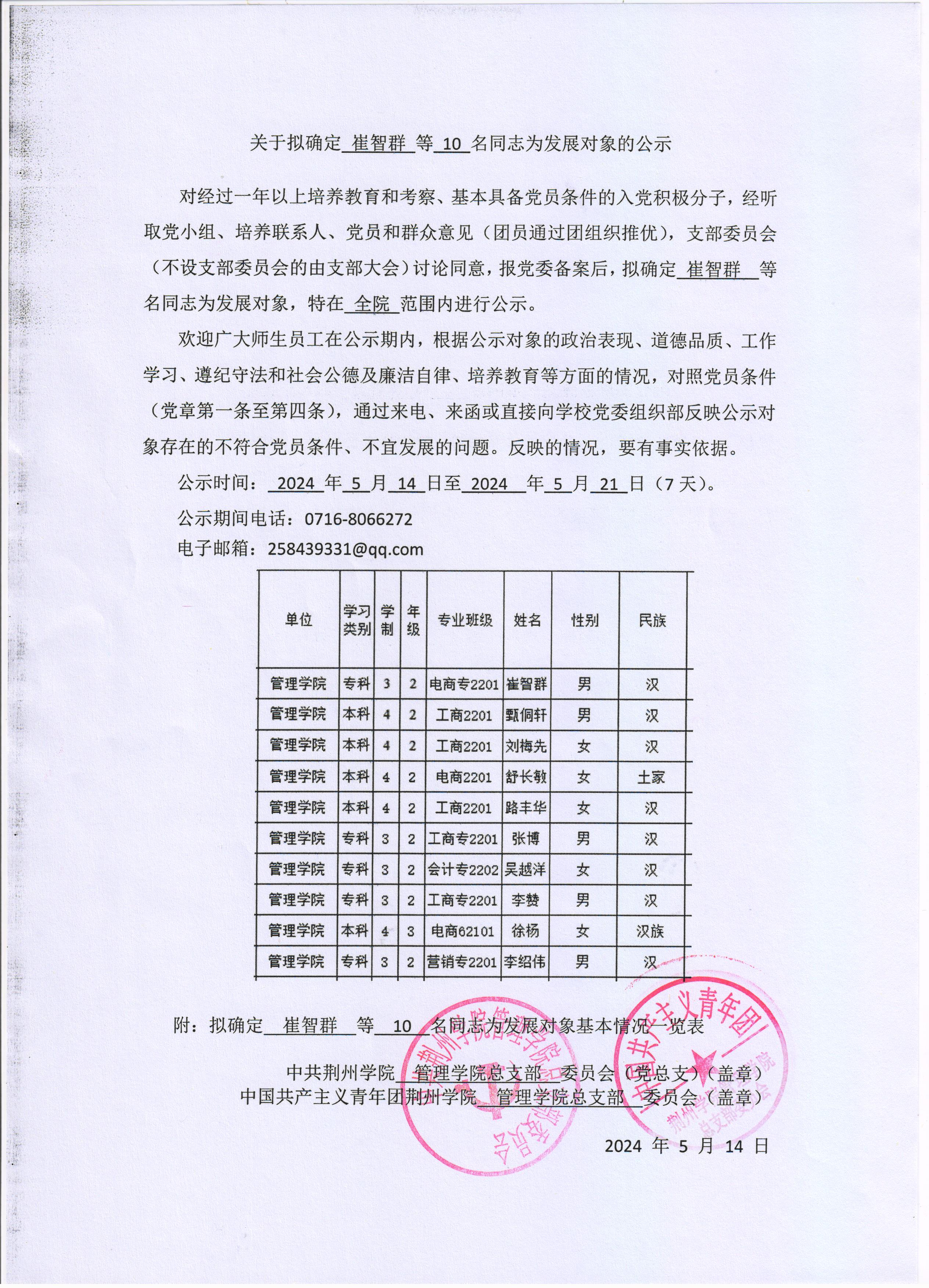 关于拟确定 崔智群 等 10 名同志为发展对象的公示