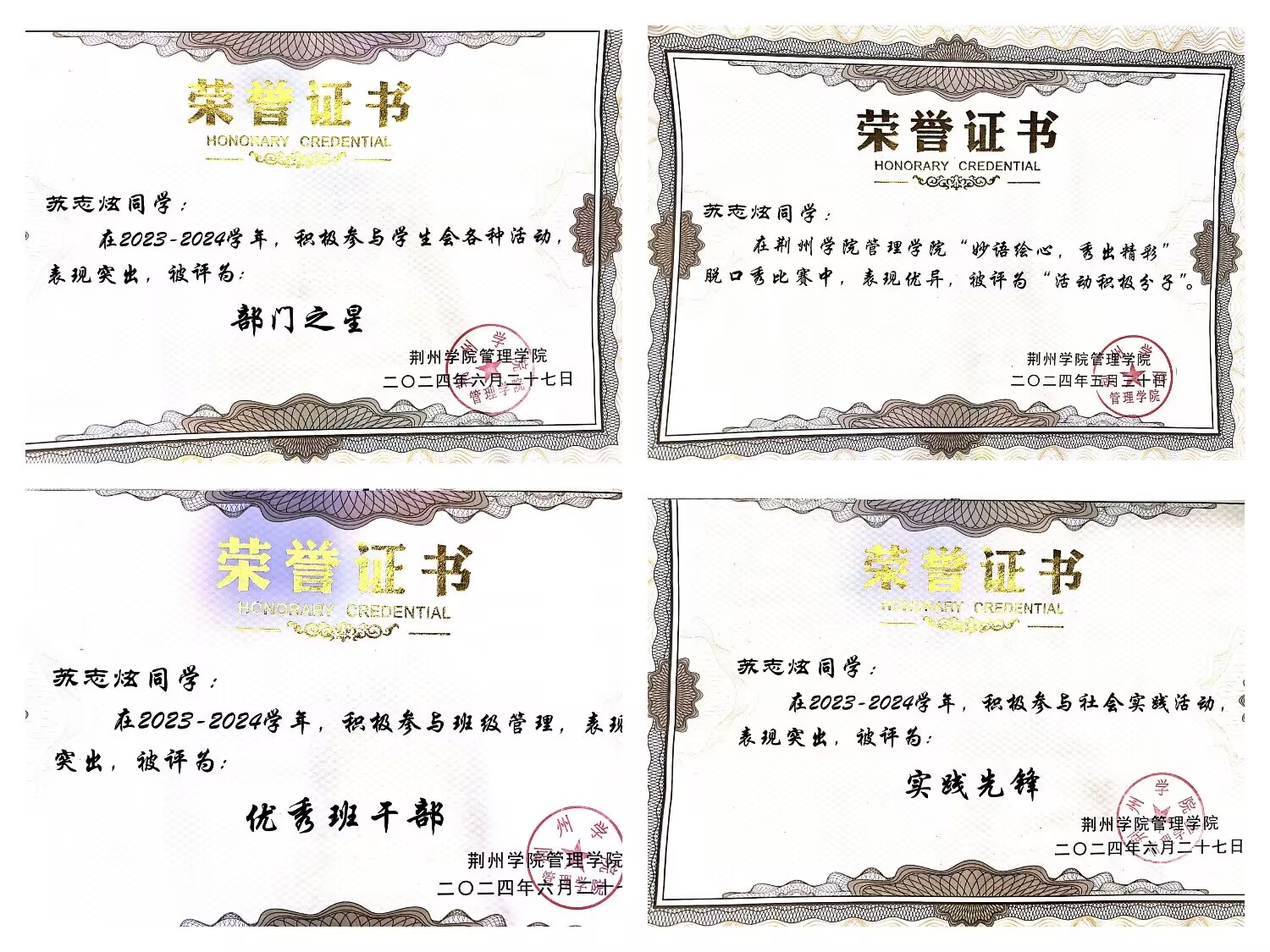 成长,恰似一场漫长且充满未知的奥德赛之旅,道路崎岖蜿蜒,却也点缀着无数绮丽风景。在这波澜壮阔的人生画卷中,我尽情演绎着多样角色。于班级之中,我是那个振臂一呼,凝聚众人力量的组织者,引领同学们在知识的海洋里破浪前行;在校园活动的缤纷舞台上,我又是满怀激情的参与者,用活力与创意为每一场活动增添独特魅力;在学习方面我获得了WilliamHill中文官方网站优秀学生二等奖学金。每一步前行,都深深烙印着我不懈的努力与炽热的激情。我从不盲目倾羡他人的辉煌时刻,因为我深知,专注于雕琢自己的每分每秒,才是铸就卓越人生的不二法门。