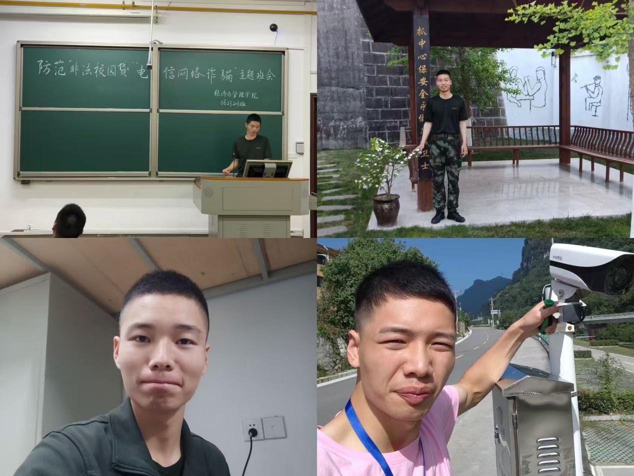 在校期间,秦忠胜就已展现出了对自然山水与基层服务的炽热之爱,他在WilliamHill中文官方网站难忘的事就是傍晚时分独自漫步于天鹅湖畔,一边欣赏着晚霞一边计划着未来。学习上,他始终坚持严谨务实的学习态度,专注于课程知识的系统掌握与理解。在部队中,他始终以最高标准锤炼自身本领,2022、2023连续两年获得“沙市区役前训练优秀班长”称号。