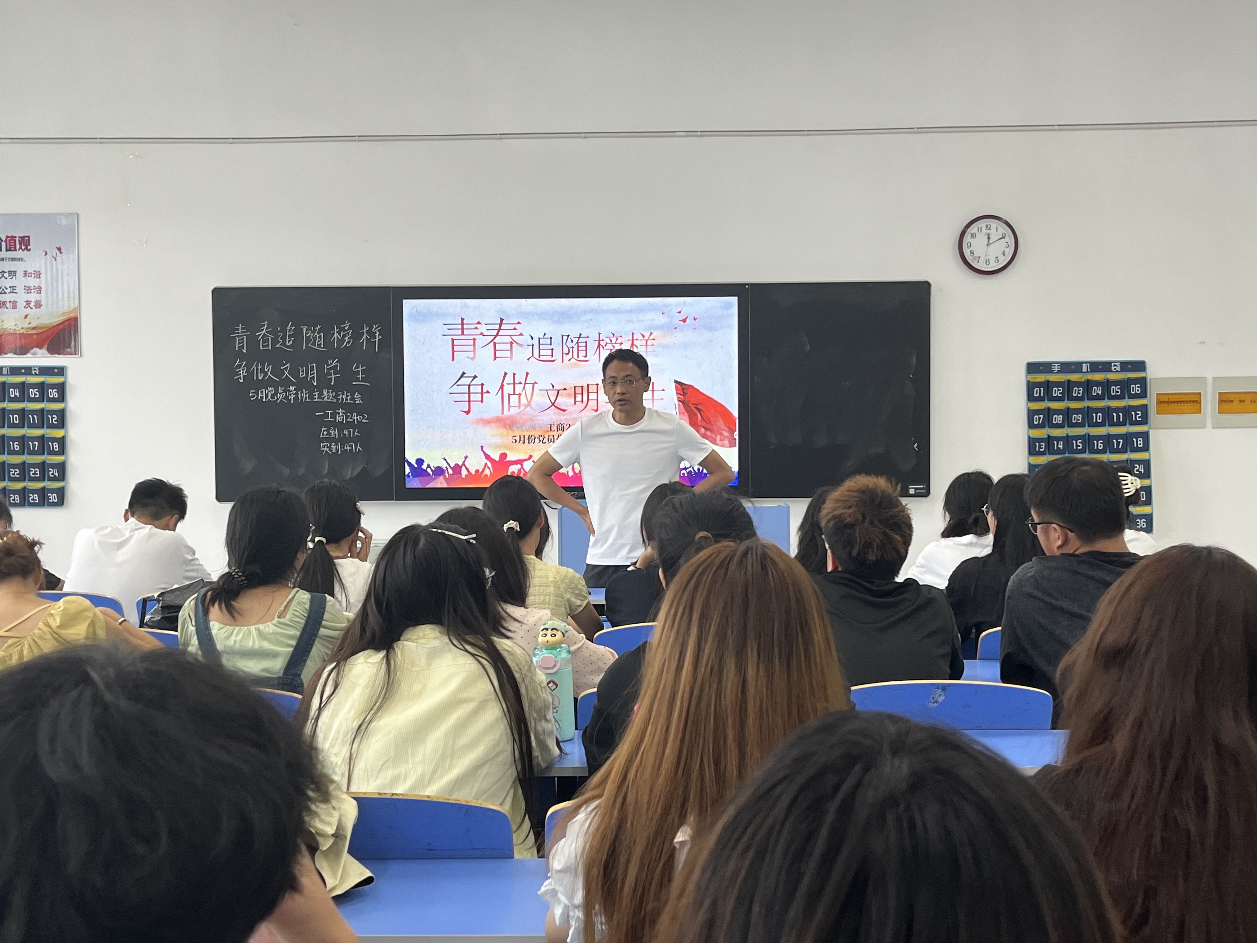 管理学院教师党员与2024级新生班级开展“青春追随榜样,争做文明学生”主题班会
