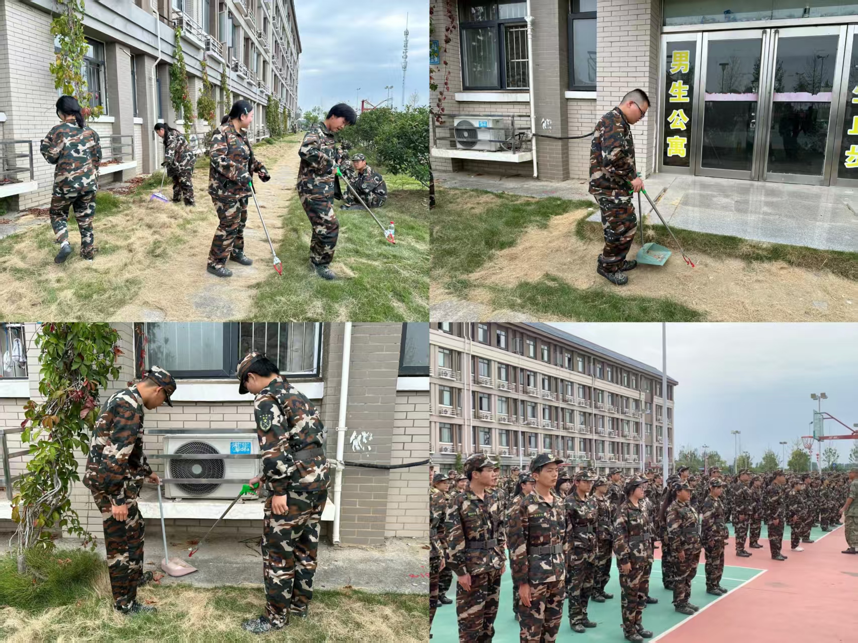 在高强度训练有序开展的同时,另有一群身体不适、无法参与高强度训练的同学也在为军训的后勤保障做出努力,他们以别样方式参与军训:训练期间,他们穿梭于训练场,为同学买水送水,及时搀扶身体不适的同学前往休息区;军训结束后,他们主动留下,细致清扫场地,用行动为军训保驾护航。这份默默付出,不仅为军训的顺利开展筑牢了“后方防线”,更让他们深度融入集体,在互帮互助中拉近与同学们的距离。