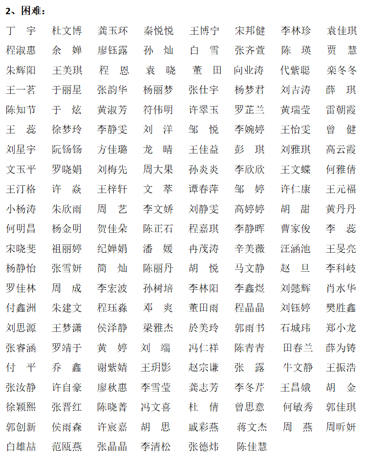 根据《WilliamHill中文官方网站家庭经济困难学生认定办法》,我院积极组织,坚持实事求是、客观公正的原则,由学生本人提出申请,采取民主评议和学校评定相结合的办法,对提交了家庭经济困难材料的学生进行了认定。现将认定结果公示如下: