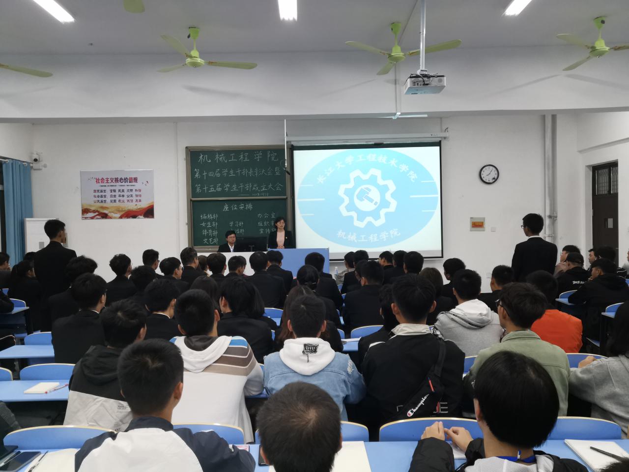 本网讯(通讯员杜盈)为鼓励先进学生,推动学生工作平稳有序进行,11月5日19时30分,机械工程学院于新校区教学楼1401召开第十四届团总支学生会表彰大会暨第十五届成立大会。出席本次会议的有该院党总支常务副书记王艳、团总支书记肖静逸、学生党支部书记苏杭,辅导员周鲁予、郭辉、刘亮、阮晓兵,部分第十四届团总支学生会优秀学生干部、“活动积极分子”以及第十五届团总支学生会全体成员参加此次会议。大会由罗思琳主持。