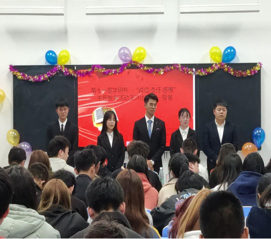 本网讯 11月19日,学院第十一届学研杯“诚信•责任•感恩”主题演讲比赛复赛在新校区举行。出席本次活动并担任评委的有院学生会执行主席马迪、院学生会主席赵明赫、青年志愿者服务总队总队长郑昊昊、大学生艺术团团长宋绪波、大学生社团联合会主席杨光照、国旗班班长丁礼权、2019年“诚信•责任•感恩”主题演讲比赛冠军陈慧林。本次活动由大学生艺术团张艺、安舒婷主持。