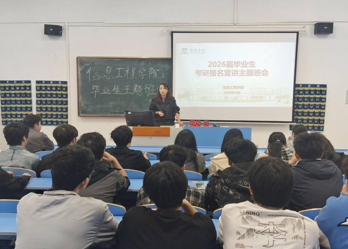 本网讯(通讯员 秦昕)为扎实推进2026届毕业生考研指导工作,信息工程学院坚持早谋划、早部署、早行动,近期精心组织开展了多场形式多样、内容丰富的考研宣讲与报名指导活动,全面助力学生科学规划复习路径、精准选择报考院校,营造了浓厚的考研氛围。