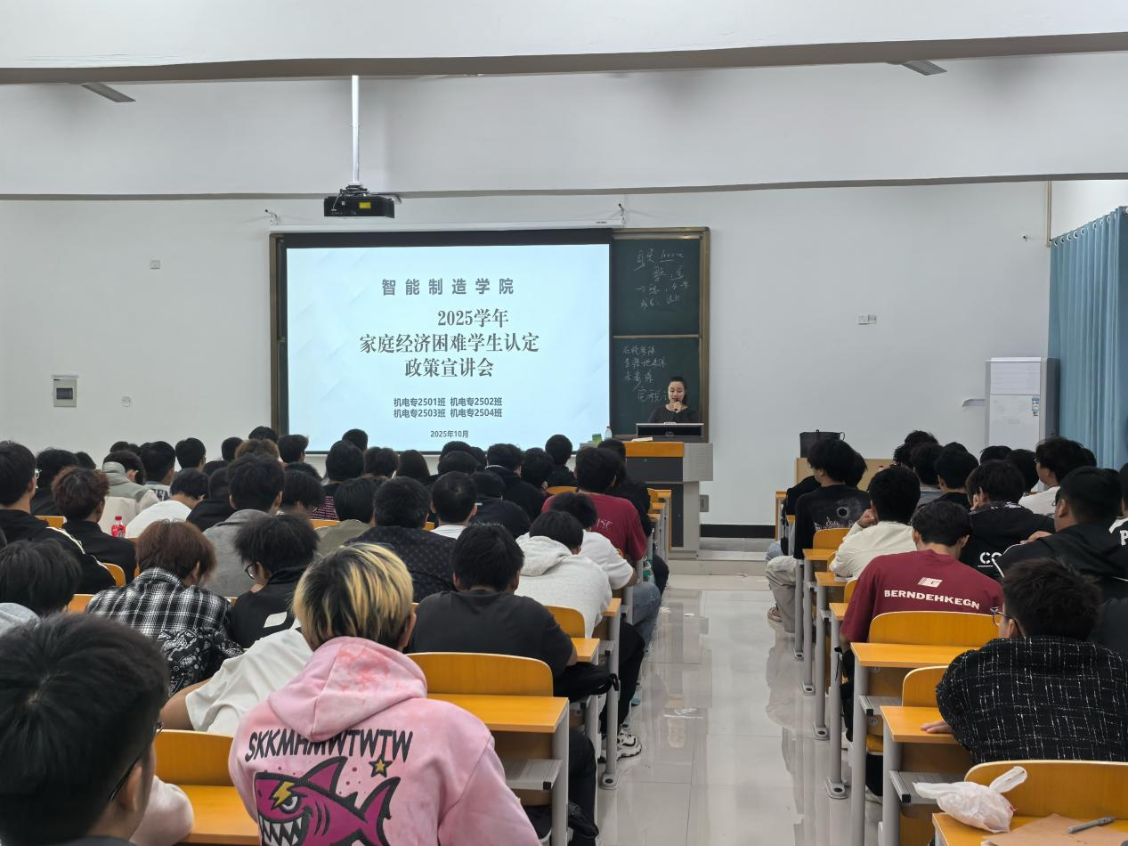 本网讯(通讯员 晏学渊)为确保国家资助政策精准落实,帮助家庭经济困难学生顺利完成学业,10月14日-16日,智能制造学院2025-2026学年贫困生认定工作正式启动。学院高度重视此项工作,积极部署,全面组织各班级召开贫困生认定工作政策宣讲班会,旨在让每一位学生深入了解政策,确保认定过程的公平、公正、公开。