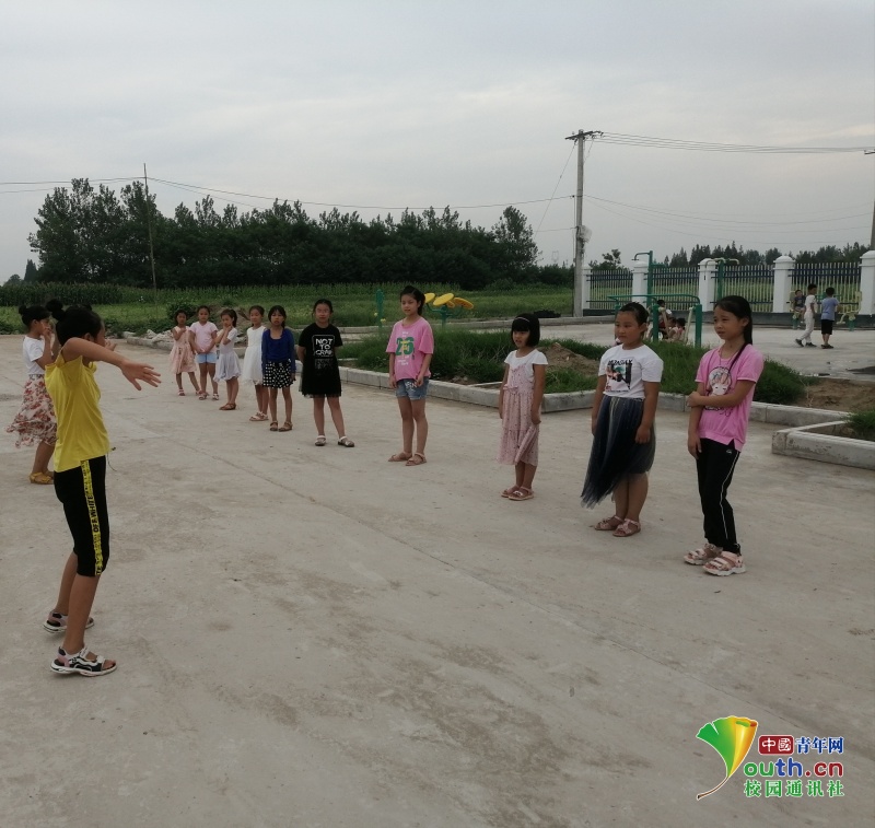 图为盛伟老师带领着孩子们在室外做小游戏。有利于活跃孩子们的思维,提升孩子们的身体素质,促进孩子们的成长和发育,养成遵守规则的习惯。让孩子们劳逸结合,在快乐中学习,在快乐中成长,同时使紧张枯燥的学习氛围变得灵动有趣。中国青年网通讯员 吴宇华 摄