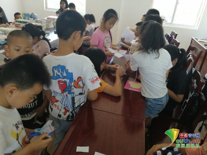图为孩子们认认真真给家长写信的场景。中国青年网通讯员 盛伟 摄