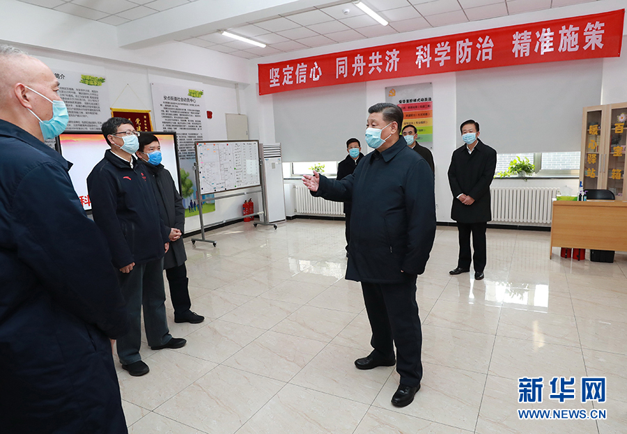 2月10日,中共中央总书记、国家主席、中央军委主席习近平在北京调研指导新冠肺炎疫情防控工作。这是习近平在朝阳区安贞街道安华里社区,了解基层一线疫情联防联控情况。新华社记者 庞兴雷 摄