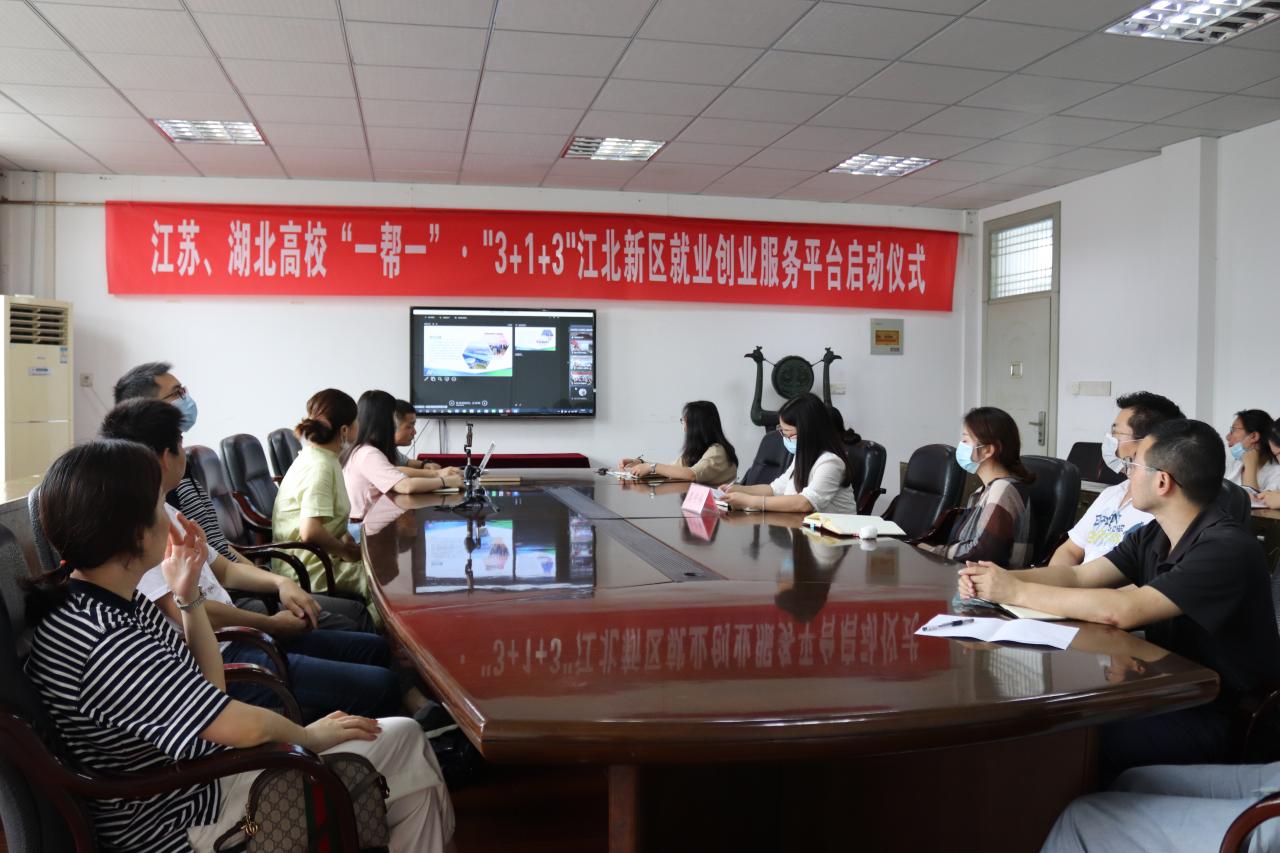 本网讯(记者 黄思琦)为贯彻落实教育部开展的全国高校与湖北高校毕业生就业创业工作“一帮一”行动,多措并举做好高校毕业生就业工作。南京江北新区社会事业局牵头搭建江苏高校“一帮一”湖北高校江北新区就业创业服务平台,于6月8日下午通过视频会议形式开展“江苏、湖北高校‘一帮一’·‘3+1+3’江北新区就业创业服务平台启动仪式”。我院校企合作与就业指导处、大学生创新创业中心相关责任人,以及2020届、2021届辅导员参加会议。会议由南京江北新区社会事业局就业社保办主任张雅婷主持。