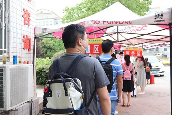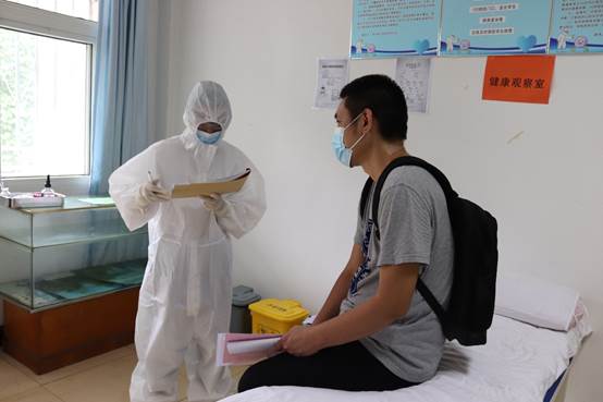 演练分为学生进入校园、入住宿舍、食堂就餐三个环节,由教职工扮演的“毕业生”,按照身份核验、体温测量、卫生消毒等环节模拟学生返校流程,并就外来人员强行闯岗、体温检测异常、食堂就餐异常等突发情况进行应急演练。