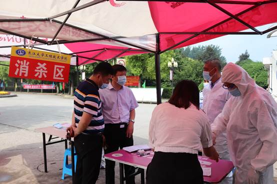 党委书记金鑫、党委副书记于永伟在荆州校区察看毕业生返校工作情况,对学生入校、宿舍防疫、毕业手续办理等问题予以指导,再次强调要在做好疫情防控的前提下,为毕业生返校、离校做好服务工作。