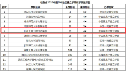 本网讯(记者 黄思琦)近日,艾瑞深中国校友会公布了2020年全国独立学院排名、中国独立学院一流专业排名、中国华中地区大学教学质量排名等多个排名。我院位居全国独立学院第48名,湖北省第4名;以拥有1个中国顶尖专业(6星)、4个中国一流专业(5星)、5个中国高水平专业(4星)位居中国独立学院一流专业第27名;教学质量位居华中地区独立学院第5名,全国第39名。