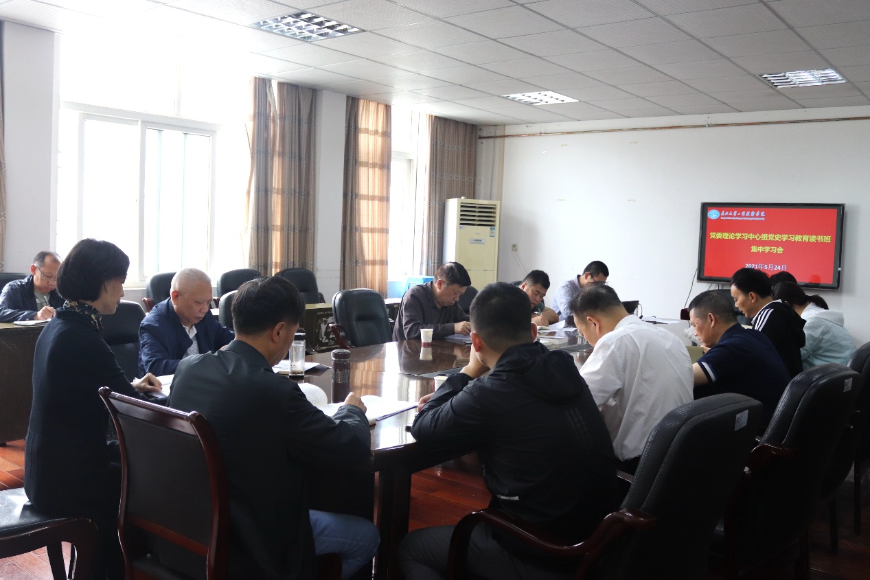 本网讯(记者 黄思琦)5月24日下午3点半,学院党委理论学习中心组党史学习教育读书班在行政楼四楼会议室开展集中学习。全体在校院领导、党群部门中层干部参加学习。学习活动由党委书记金鑫主持。
