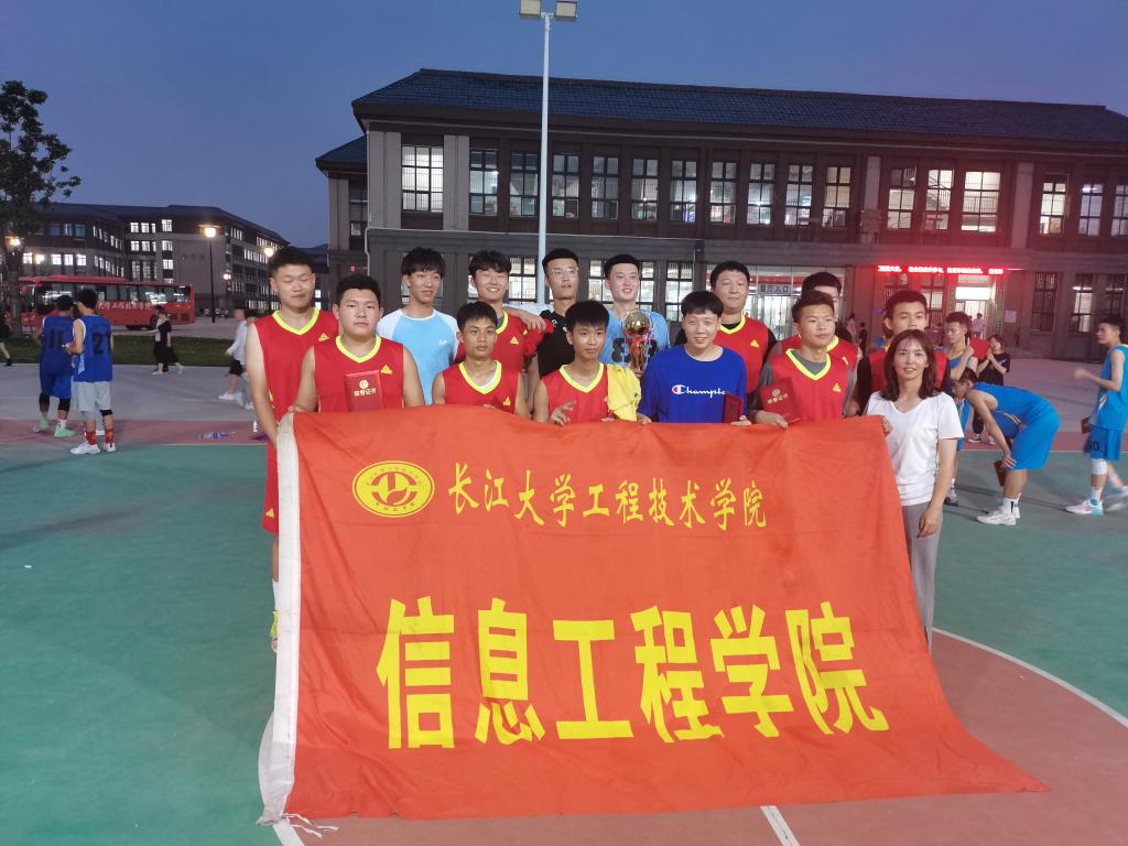 在新校区篮球场一号场地,信息队与管理队的冠军争霸赛如火如荼地展开。双方球队实力都不容小觑,两队都是赛场上的佼佼者,场外围满了前来助威的观众。裁判一声哨响,双方便展开激烈的角逐,信息队20号开场一个三分球点燃士气,随后队友接连进球拉开比分,第一节比分暂时领先。后两场管理队奋力追赶,第二节开局管理队5号接连投出三分球瞬间追回比分,场上气氛开始变得沉重。信息队稳扎稳打,攻守兼备,在管理队强有力的攻击下,第三节结束仍保持三分优势。第四节管理队5号首发一个三分球将比分追平后,比赛进入白热化阶段,双方球员及在场观众都分外紧张,信息队在有效的进攻后防守造成犯规使管理罚球得分,在双方僵持一段时间后,信息队凭借出色的配合,20号接连进球使比分拉大,最终以69:59获得胜利。