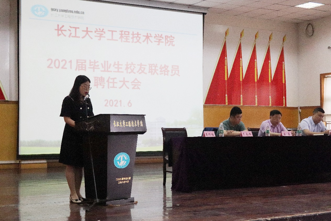 会上,校企合作与就业指导处科长苏坤宣读2021届毕业生校友联络员聘任文件。党委副书记于永伟为受聘的71名校友联络员颁发聘任证书。