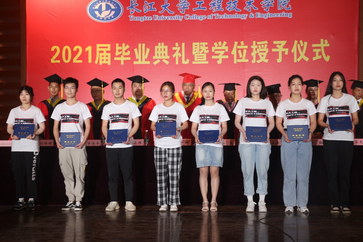 在庄严的国歌声中,典礼拉开帷幕。院领导李克华、于永伟分别宣读学位授予文件和表彰文件。学院领导为2021届优秀毕业生、考研先进个人和先进集体予以表彰,身着学士服的毕业生走上主席台,接受授予学位、拨穗正冠。