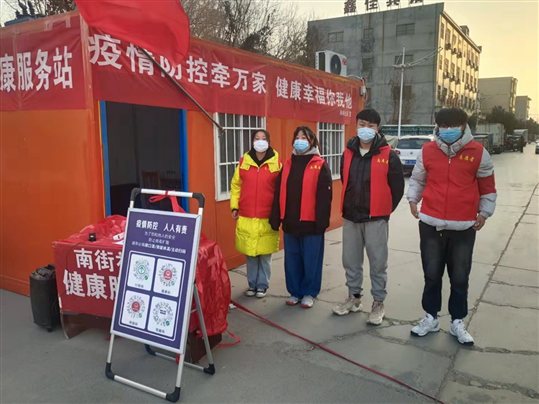 城市建设学院城规62101班的王术齐同学,也积极响应家乡战疫号召,主动参与了河南省商城县疫情防控工作,寒冷的天气也没能阻挡她的热情。她说:“为疫情防控做点事,是我们大学生的责任与担当。”