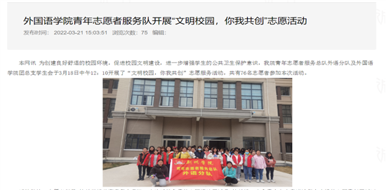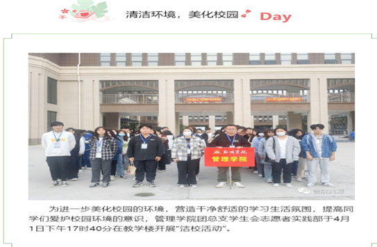 各分院围绕“文明新风、从我做起”主题,开展洁校、海报设计大赛、文明寝室创建等多种形式的宣传教育活动,营造更加浓郁的文明校园氛围,促进学生养成文明健康生活习惯。