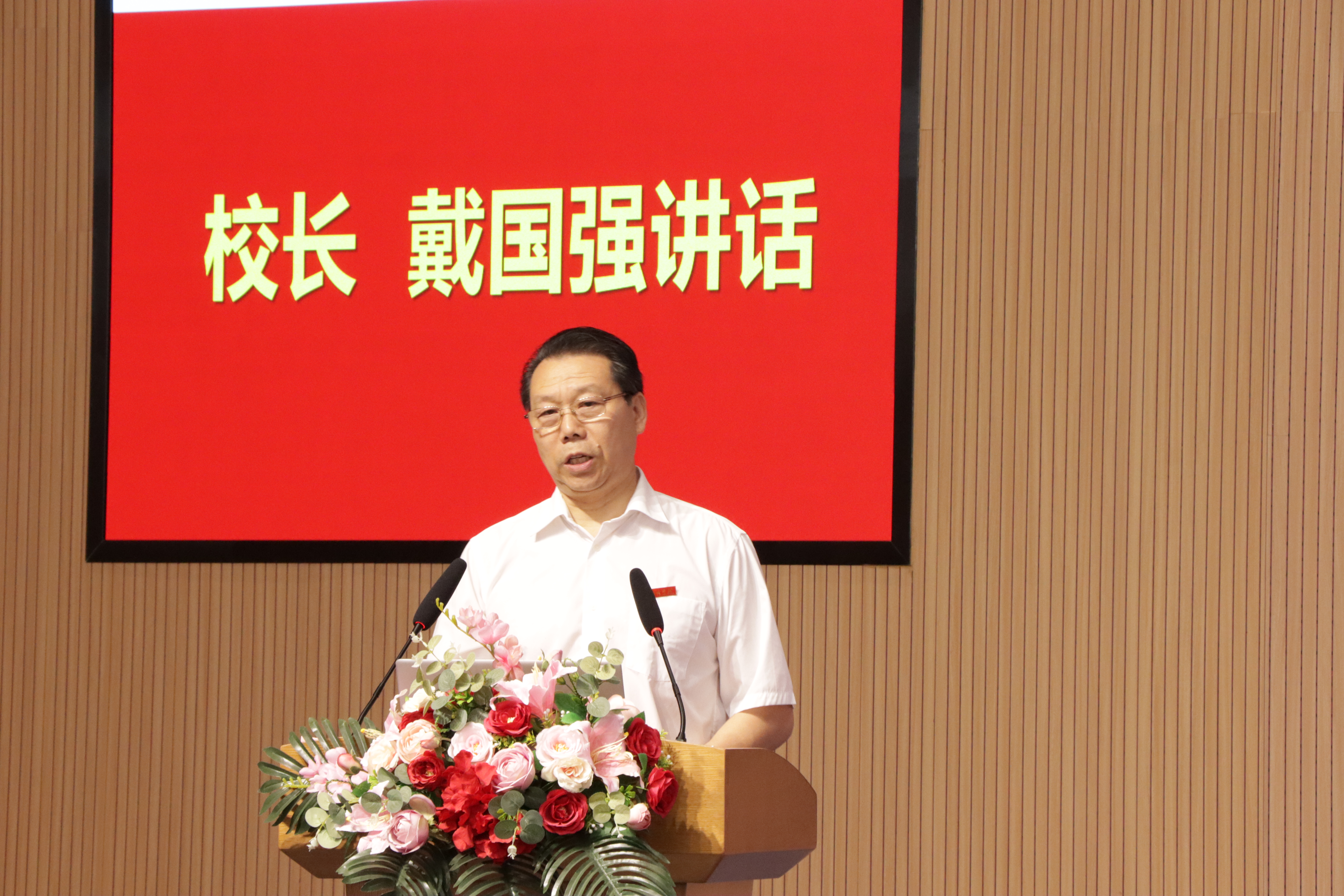 会议伊始,全体师生起立奏唱国歌。随后,副校长刘瑾宣读“三育人”表彰文件。副校长刘瑾、付秋峰和校长戴国强分别为“三育人”先进个人颁奖;党委书记张晓彬为先进单位代表颁发荣誉奖牌。