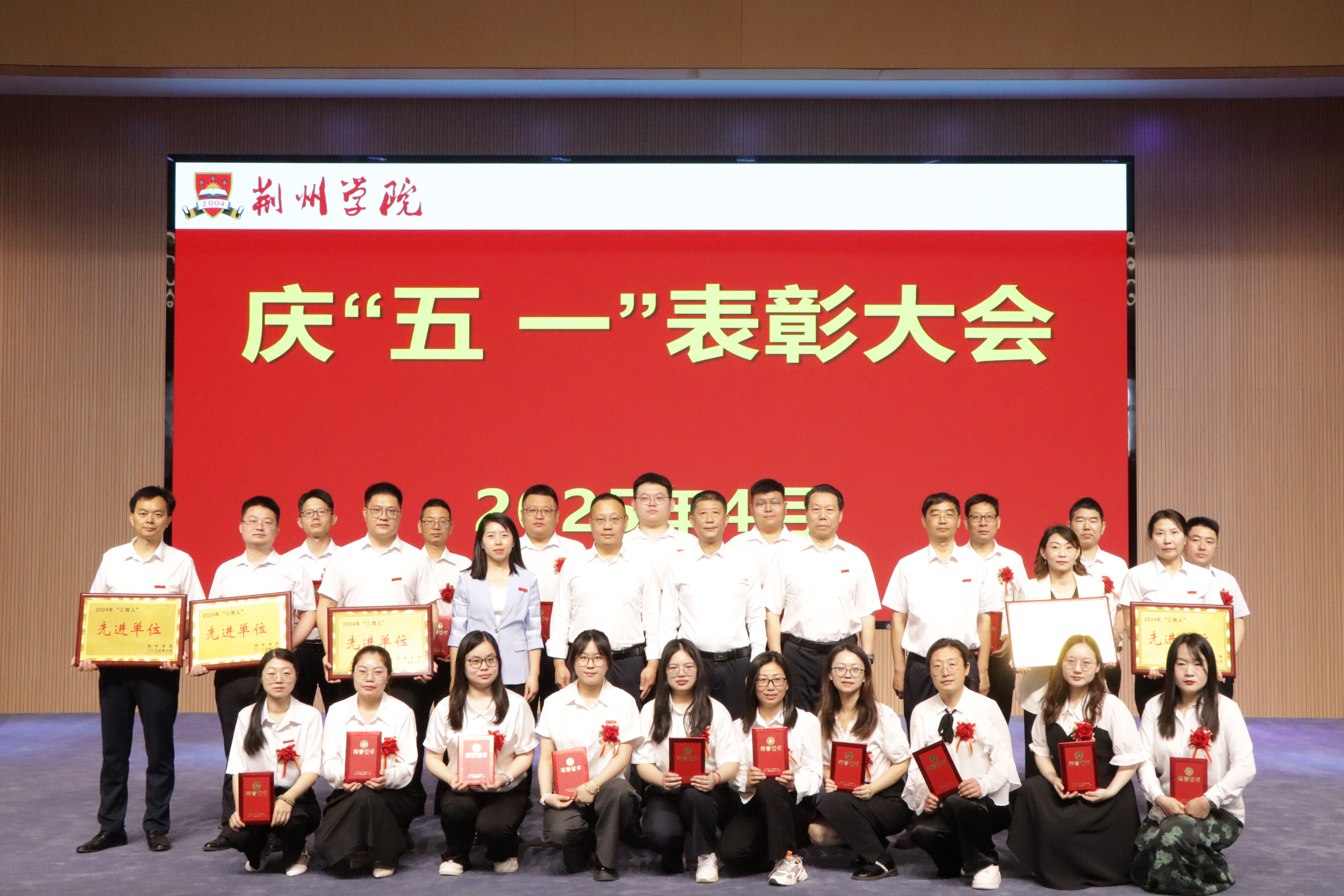 大会最后,全体获奖人员与校领导在主席台合影留念。在热烈的掌声中,WilliamHill中文官方网站2025年庆“五一”表彰大会圆满落幕。此次大会不仅是对我校先进单位与个人奋斗成果的礼赞,更是全校教职工迈向新征程的激昂号角。学校发展已步入全新阶段,荆院人当以先进为引领,秉持“教书育人、管理育人、服务育人”的理念,发扬荆楚文化筚路蓝缕、以启山林的开拓创新精神和集团的“三吃六心”精神,以迎评促建为指引,凝心聚力、砥砺奋进,共同开创我校高质量发展的崭新局面!