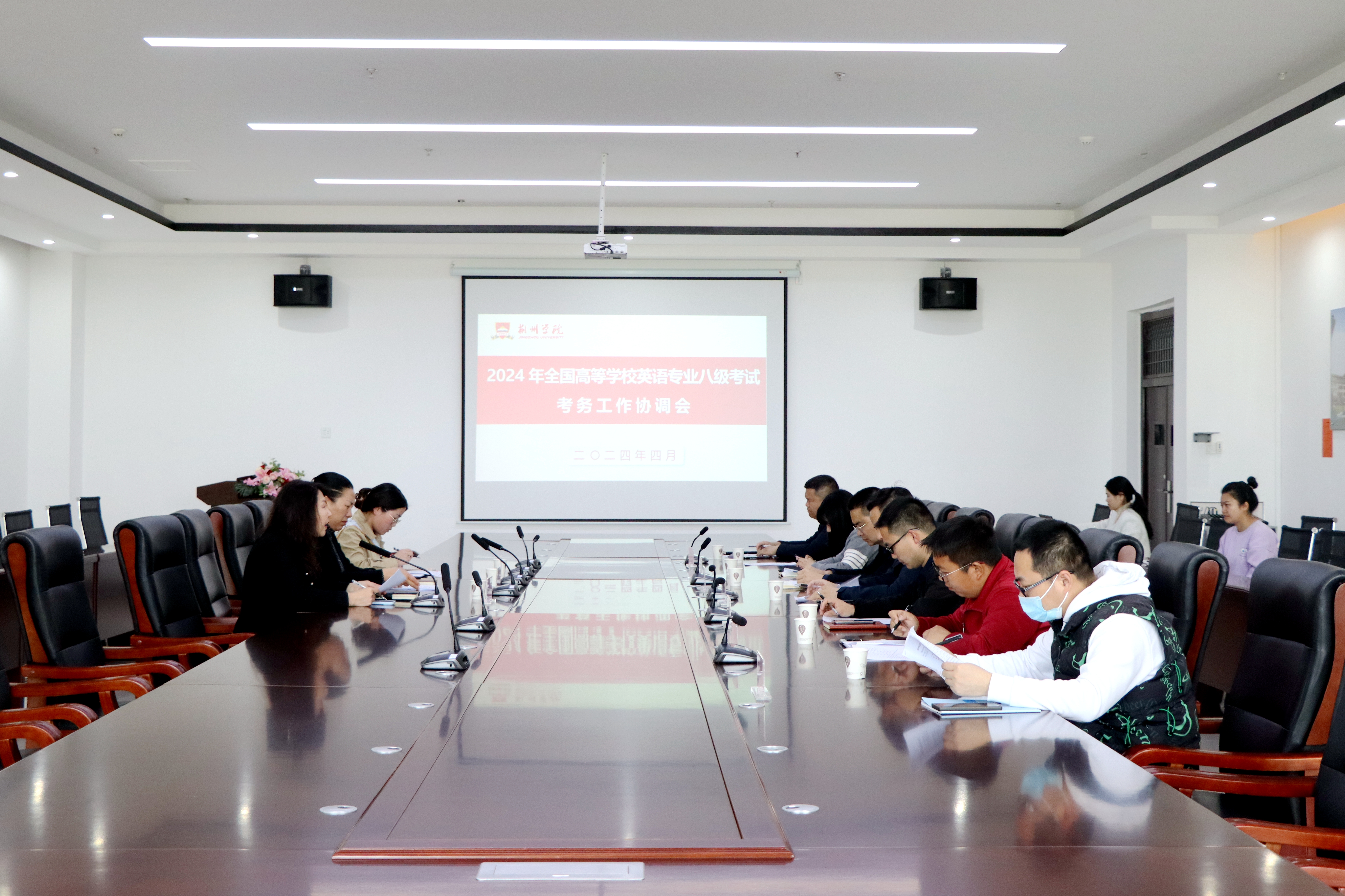 4月9日上午,我校在301会议室举行了2024年全国高等学校英语专业八级考试考务工作协调会。集团董事、学校校长丁锋、教育学院党总支书记莫修梅,学校相关职能部门领导参加会议,会议由教务部部长牟海霞主持。