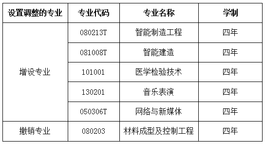 经二级学院申报、学校组织评审学校拟向教育部申请新增5个本科新专业,撤销1个本科专业,现将相关情况予以公示。