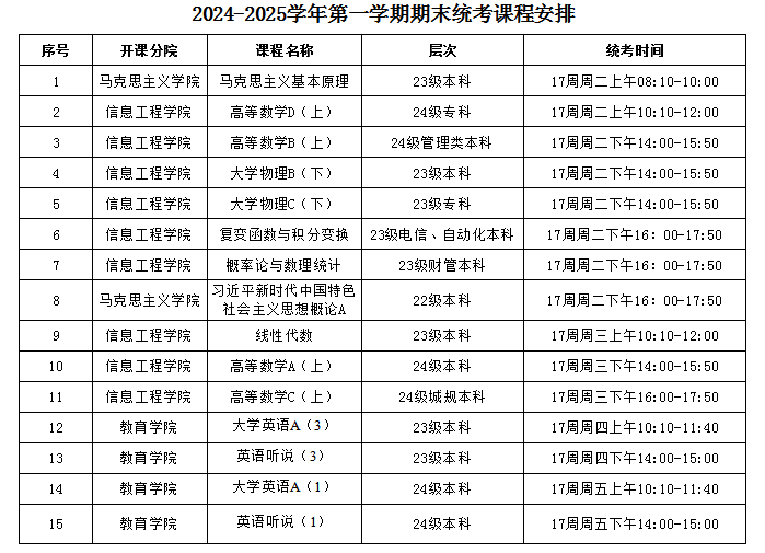 1.统考课程考试由教务处统一安排,专业课考试由各二级学院自行安排,若有其他问题,可由教务处协调。