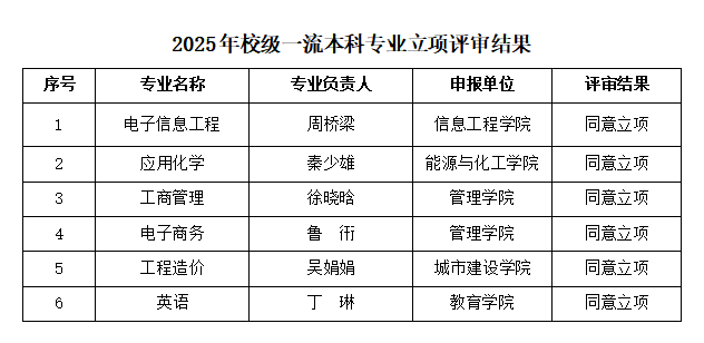 根据《WilliamHill中文官方网站关于开展2025年度校级一流本科专业申报的通知》要求,经专业负责人申报、二级学院推荐、专家评审,学校批准6个校级一流本科专业立项。