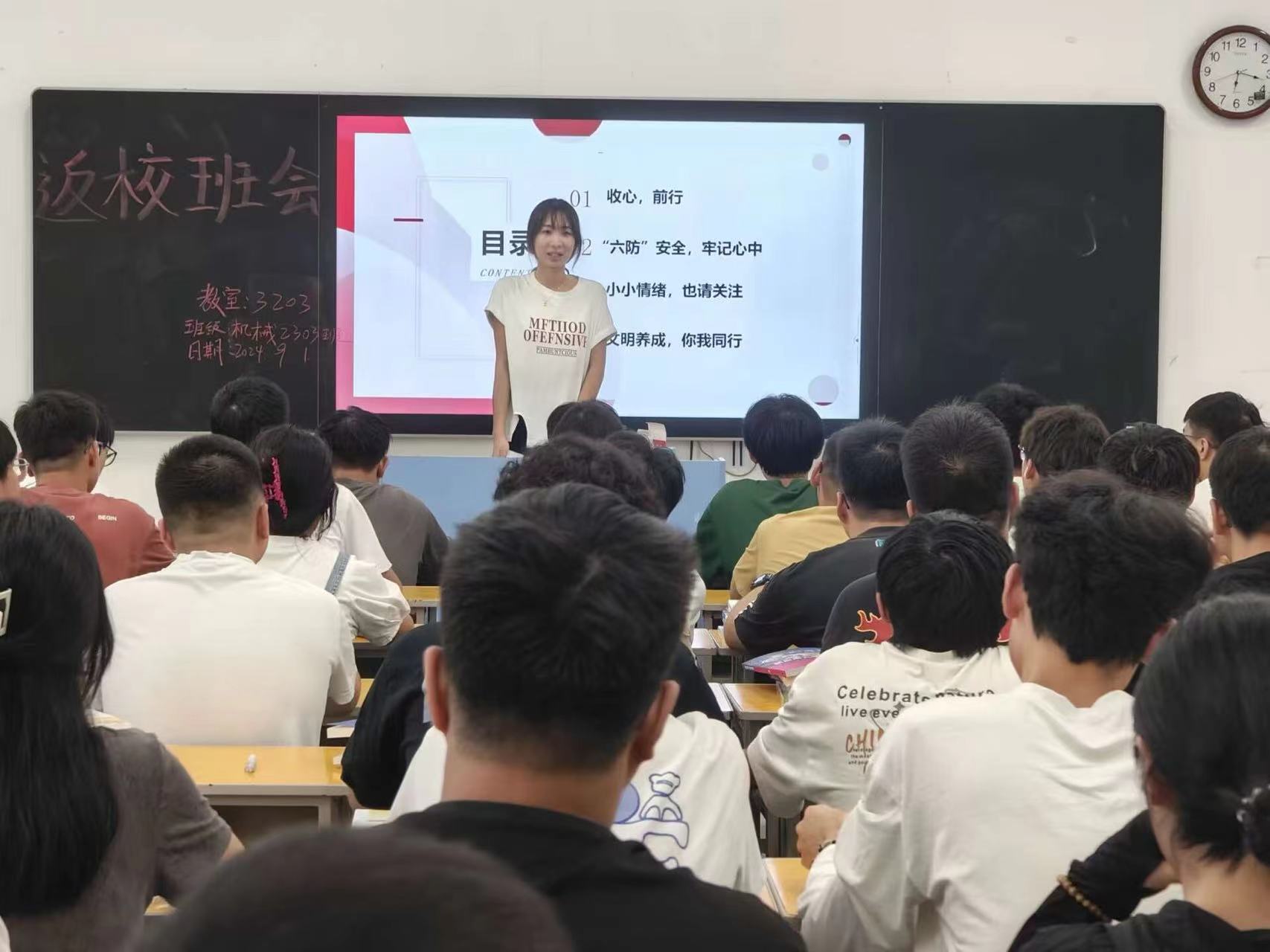 班会由各班辅导员主持,内容涵盖了消防安全、交通安全、网络安全、心理健康安全等多个方面。辅导员们结合实际案例,生动形象地向学生们讲解了安全知识,强调了安全防范的重要性,以及增强安全防范意识和提升自我安全防护能力。老师们反复叮嘱大家一定要谨防网络诈骗,在收到陌生转账时务必保持头脑清醒!最后辅导员们提醒同学们:“新学期的到来,要做好新学期的学习规划,合理安排时间,提能高学习效率。”