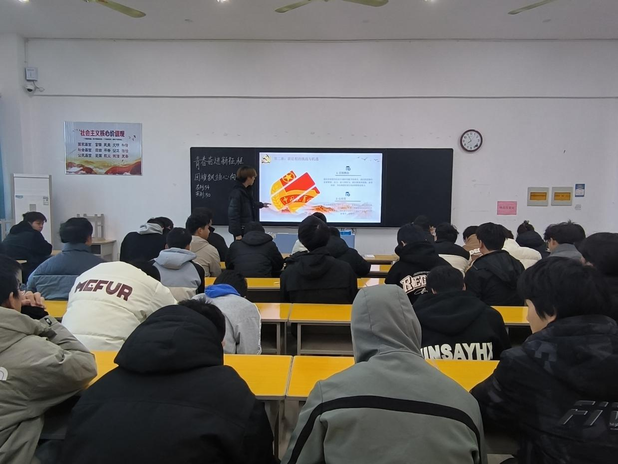 本次团课由各班团支书或其他班委担任主讲人,主讲人简要介绍了本次团课的主题和目的,强调了在新时代背景下,团员青年肩负的重要使命。在学习环节,通过生动的视频展示和精彩的讲解,团员们深入回顾了党的光辉历史和伟大成就。从嘉兴南湖的小小红船到领航中国行稳致远的巍巍巨轮,党的奋斗历程激励着每一位团员青年。大家深刻感悟到党的初心和使命,更加坚定了永远跟党走的信念。接着,团课聚焦团的使命和新时代青年的责任。讲师详细阐述了共青团在不同历史时期发挥的重要作用,以及在新时代如何团结带领广大青年为实现中华民族伟大复兴的中国梦而努力奋斗。团员们认真聆听,积极思考,纷纷表示要以实际行动践行团的使命,在各自的岗位上发光发热。互动交流环节中,同学们踊跃发言,分享自己对团课主题的理解和感悟。有的讲述了自己在志愿服务中的经历,展现了青年的奉献精神;有的结合自身专业,探讨如何将个人发展与国家需求相结合,为建设社会主义现代化强国贡献力量。现场气氛热烈,充分展现了团员青年的朝气与活力。
