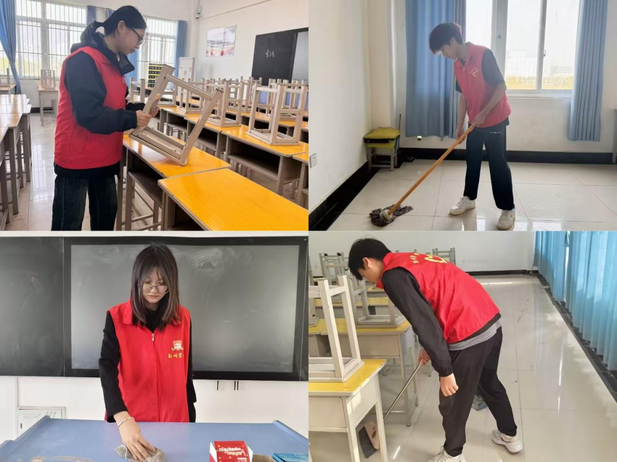活动开始前,志愿者们被分为若干个小组,每个小组都被分配到指定地点。接着,由志愿者负责人进行考勤签到,并对清扫范围进行了合理分工。教室里,同学们分工明确,细致认真,确保每一个角落都一尘不染。忙碌的身影还透露着细心和耐心,每一个动作都充满能量,每一滴汗水都是他们热情的结晶。经过大家的努力,原本略显杂乱的教室焕然一新,桌椅摆放整齐有序,干净的黑板能反射出窗外的阳光。他们劳动的身影散落在教室的各个角落,成为了一道亮丽的风景线。