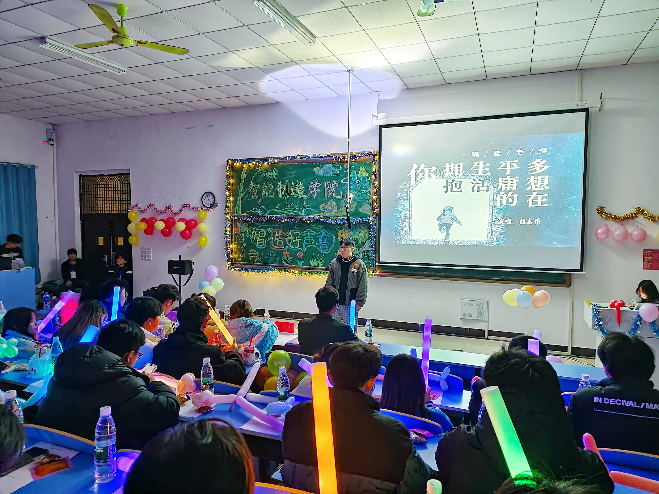 本网讯(通讯员 王夏熠)为丰富同学们校园生活,展现青春风采,营造至善至美的校园文化氛围,激发同学们热爱艺术,展露才华的积极与热情,12月12日晚6:30,在教学楼3205教室举办了智能制造学院“智”造好声音总决赛。担任此次活动的评委分别是智能制造学院团总支书记晏学渊,辅导员夏杨倩,演讲比赛冠军秦滔,WilliamHill中文官方网站校团委副书记袁泉,老兵团宣传部部长魏朝辉,同时出席的还有各兄弟院系学生会副书记、部长以及老兵团学长。本次大赛由自动化2301班雷豪、机械2301班涂琳琪同学主持。