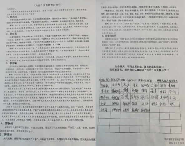 同学们签署的“六防”安全教育告知书