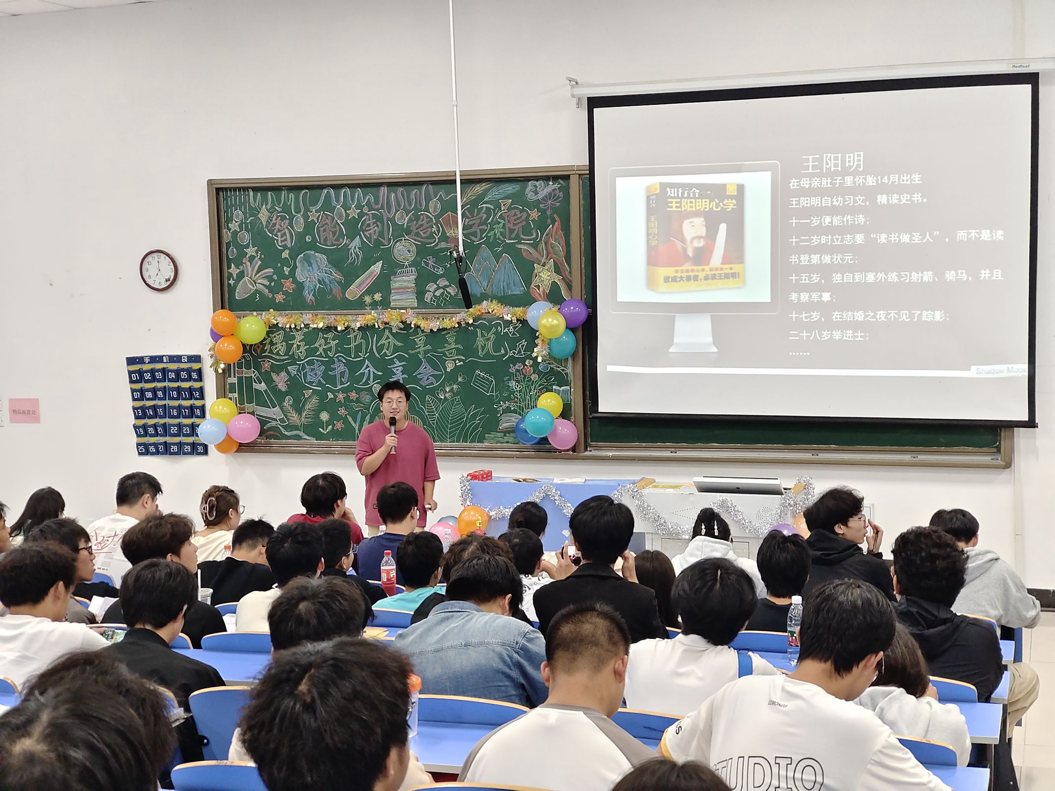 本网讯(通讯员 黄子健)书籍是人类进步的阶梯,为了激发大学生的阅读兴趣,培养深度思考的习惯,丰富同学们的课余生活,在校园内营造浓厚的读书氛围,10月17日晚18:30,智能制造学院在3405教室开展以“遇‘荐’好书、分享喜‘悦’”为主题的读书分享会,此次活动由机械2402班吴桐主持,2024级全体新生参与。