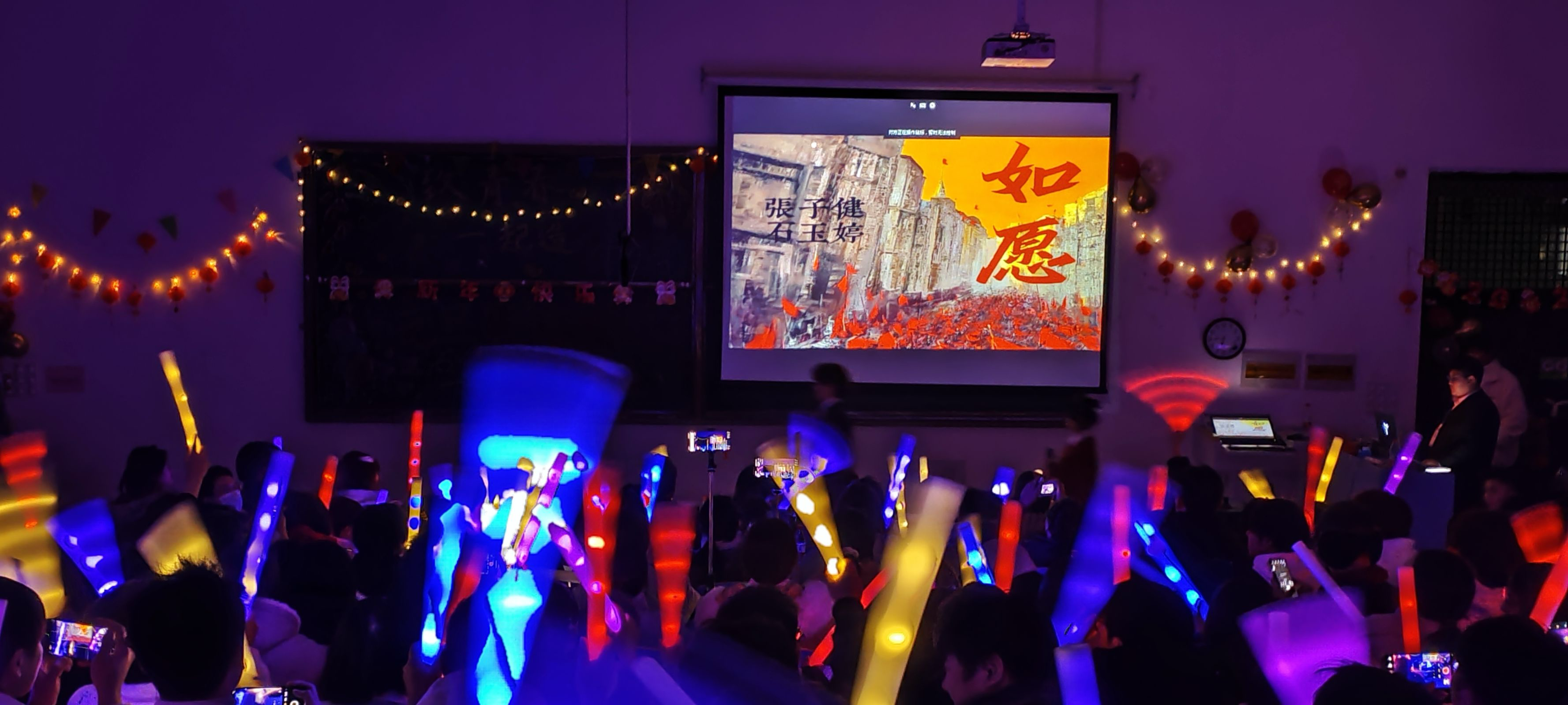 晚会还特别设置三轮互动环节:击鼓传花,听歌识曲,发红包。现场欢呼声与尖叫声此起彼伏,不断将晚会推向高潮!