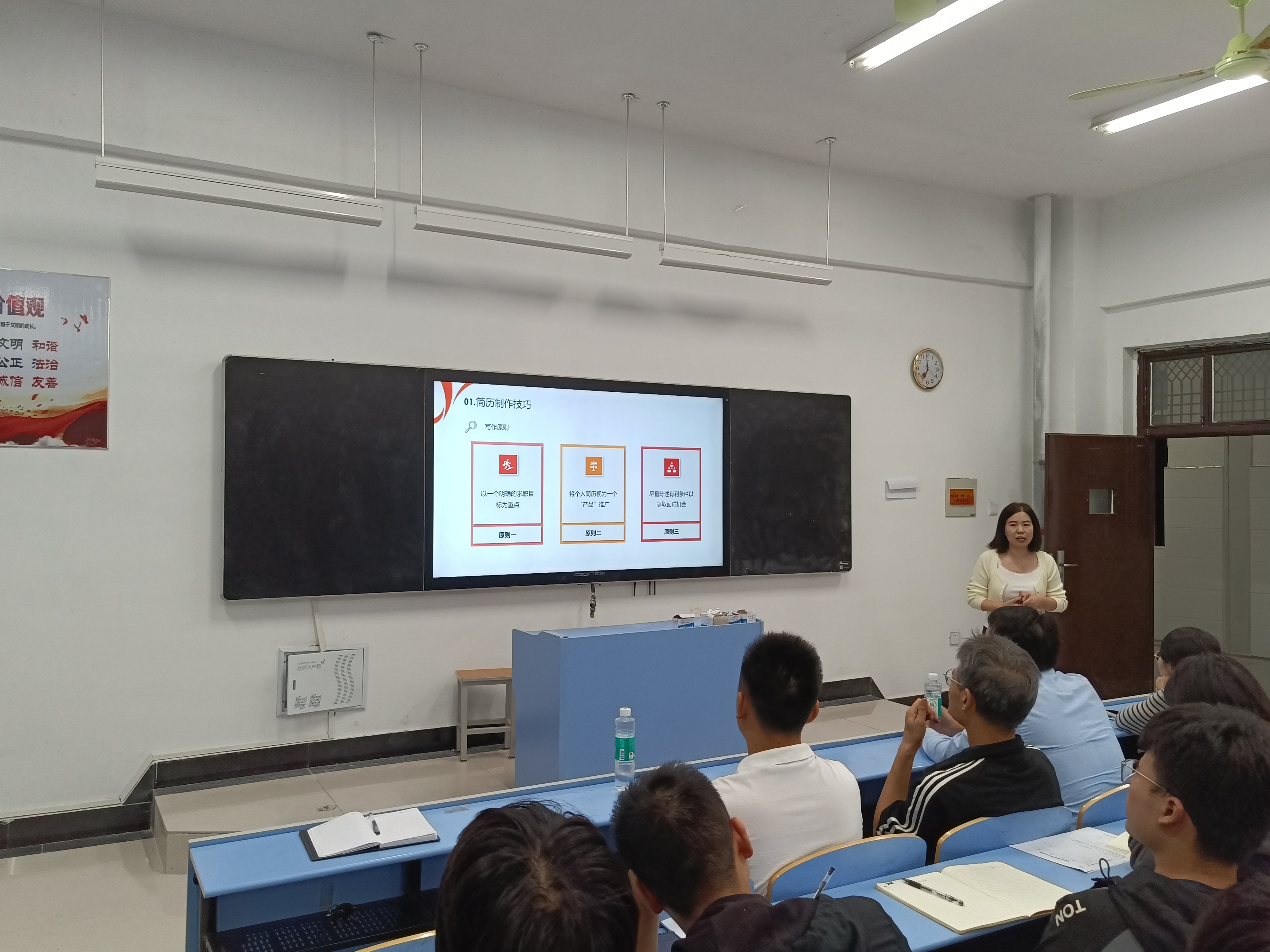 会议伊始,陈艳茹经理从“市场环境”、“疫情影响”、“企业人员需求”三个角度为同学们介绍了近年本科毕业生的就业形势及就业情况。随后,陈经理分别从行业及岗位、实习流程、简历制作及面试技巧等方面进行细致讲解,并对同学们存在的疑惑进行解答。陈经理指出,要准确分析自身情况,平衡考研与就业问题,确定好目标企业,调动自身积极性,将眼光放宽,及时把握住机会。